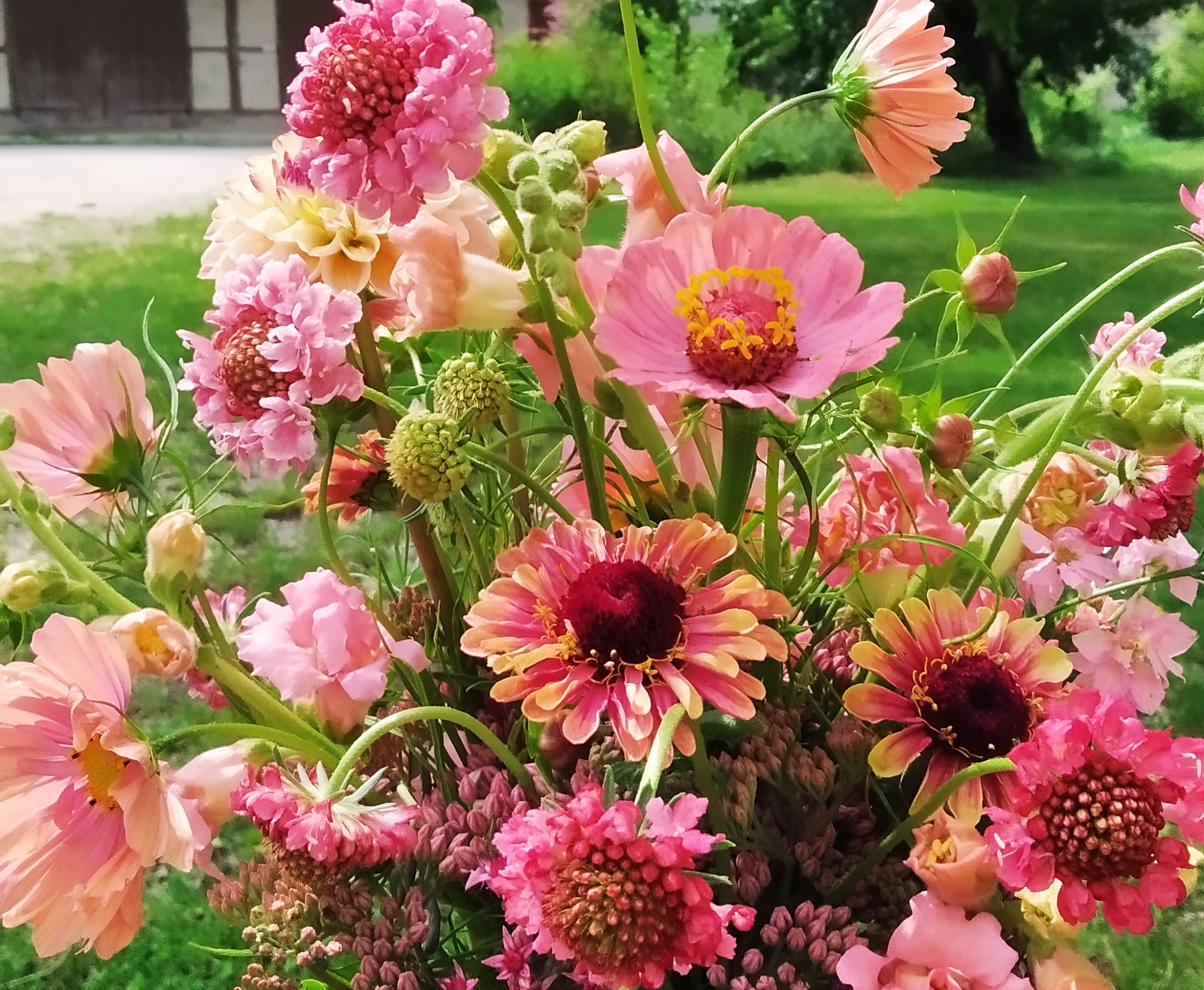 Auch dieses Jahr gibt es wieder Workshops zum Sträußebinden! Es ist immer wieder wunderbar zu sehen, wie kreativ meine TeilnehmerInnen an die Blumenvielfalt herangehen. Es entstehen immer so unterschiedliche und dennoch jedes für sich wunderschöne und einzigartige Kunstwerke. Bei hoffentlich schönem Wetter zeige ich euch bei einem Ackerrundgang die verschiedensten Stauden und Einjährige, die für den Schnitt geeignet sind. Dazu bekommt ihr eine Menge Infos, wie sie gepflanzt und geschnitten werden sollen... Anschließend bindest du unter unserem Schwarznußbaum mit Anleitung einen eigenen, herrlichen Strauß, den du natürlich mit nach Hause nehmen kannst. Dabei lernst du viele verschiedene Schnittstauden und Einjährige kennen und bekommst eine Einführung, wie mit Spiraltechnik und ein paar Gestaltungsregeln die Kunstwerke besonders gut gelingen. Ein rundum wunderbarer Nachmittag zum genießen und kreativ werden. Dazwischen gibt es Kaffee/Tee und Kuchen.