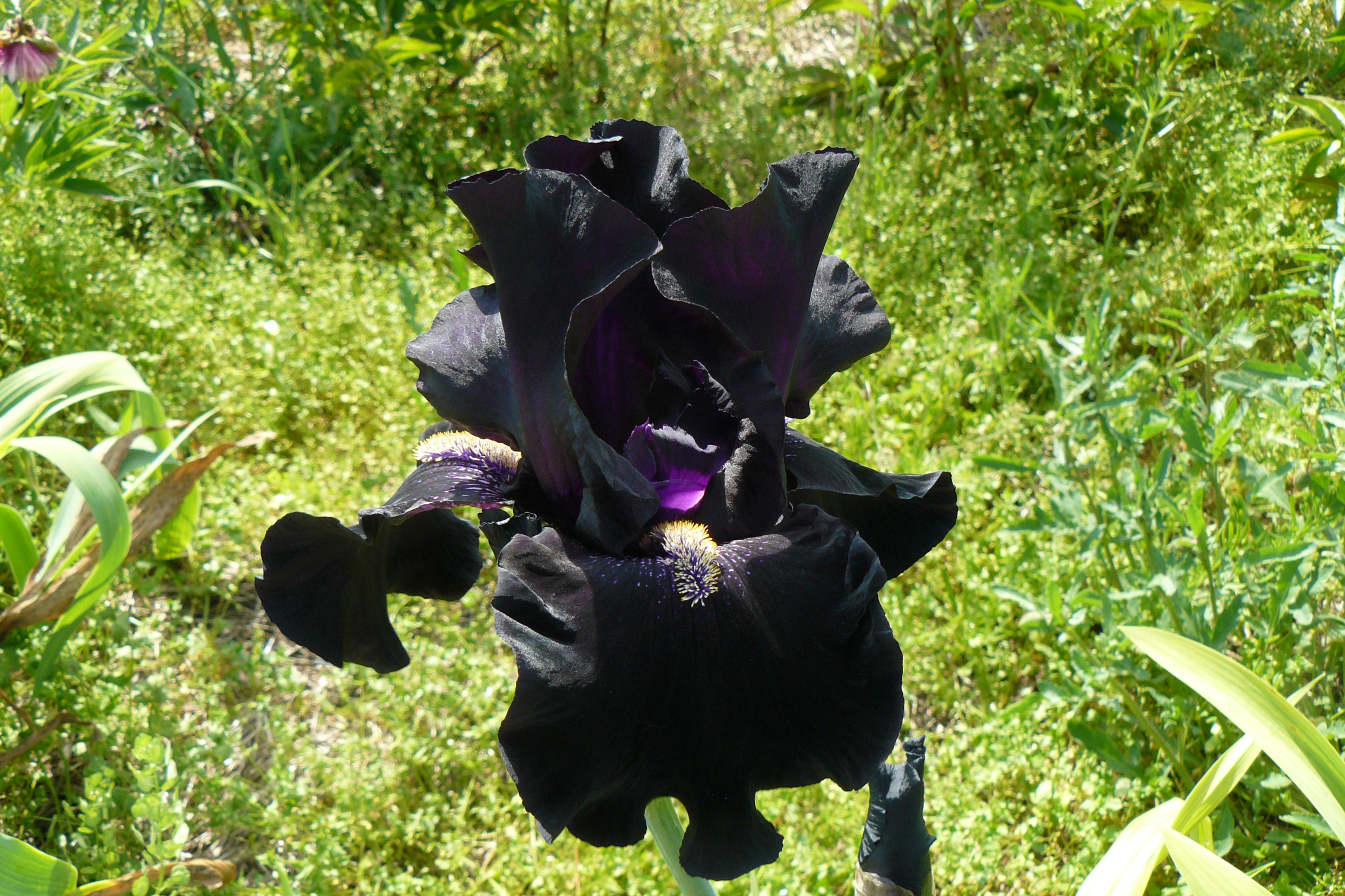 Eine eindrucksvolle Iris. Der helle Bart setzt sich wunderbar gegenüber den samtschwarzen Blütenblättern ab - faszinierend! TB-Iris von Schreiner 2009. Höhe ca. 90 cm.