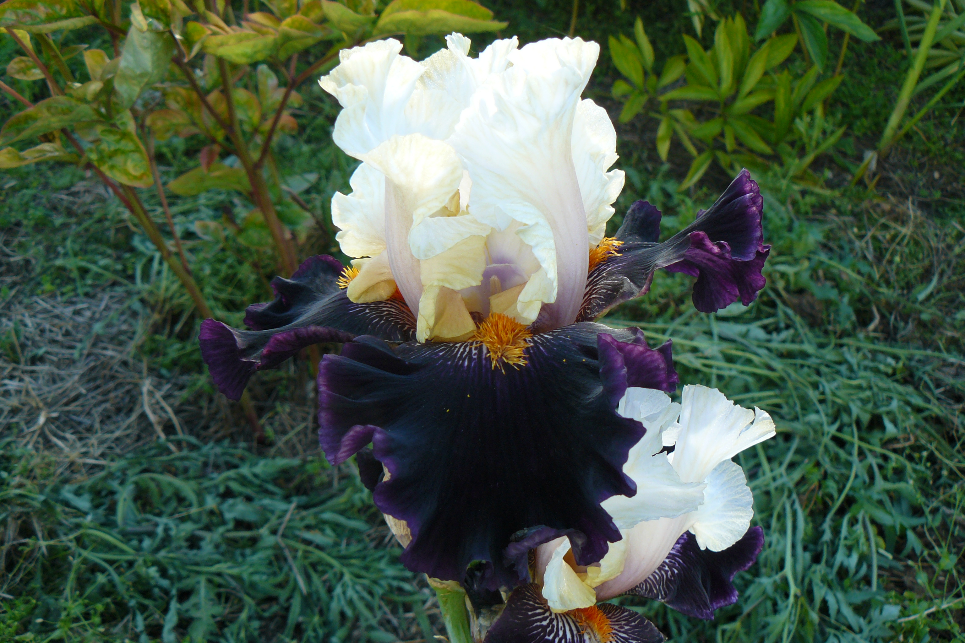 Ein starker Kontast lässt diese Iris so eindrucksvoll erscheinen. Fast schwarze Hängeblätter und der helle Dom, dazu noch die leuchtend orangen Bärte bilden einen enormen Effekt. Dazu duften die Blüten noch gut. Höhe ca. 90 cm, gezüchtet von L. Lauer 2009.